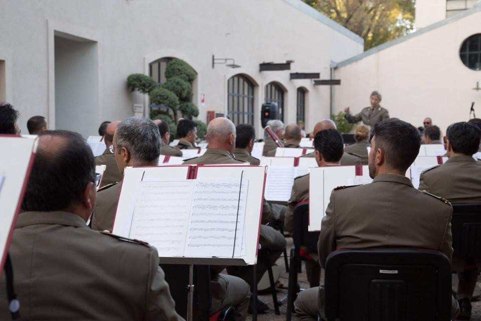 A seguire, il folto pubblico, guidato dalle ninfe del Gruppo Storico romano, si è spostato in un cortile all’aperto per assistere al Concerto della Banda dell’Esercito, diretta dal M° Capitano Antonella Bona, durante il quale le giovanissime cantanti hanno avuto l’occasione di esibirsi nuovamente. Il concerto si è concluso con l’Inno di Mameli, cantato calorosamente da tutto il pubblico, in previsione della partita Italia-Germania che è stata proiettata alla fine dell’evento su un maxi schermo all’aperto.